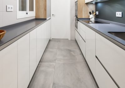 Siempre nos pedís que enseñemos cocinas pequeñas y vuestros deseos son órdenes. En esta vivienda tuvimos muy en cuenta las condiciones de las personas que la habitan. Acondicionamos la cocina, no sólo para que fuese pequeña, también para la comodidad de cada circunstancia.