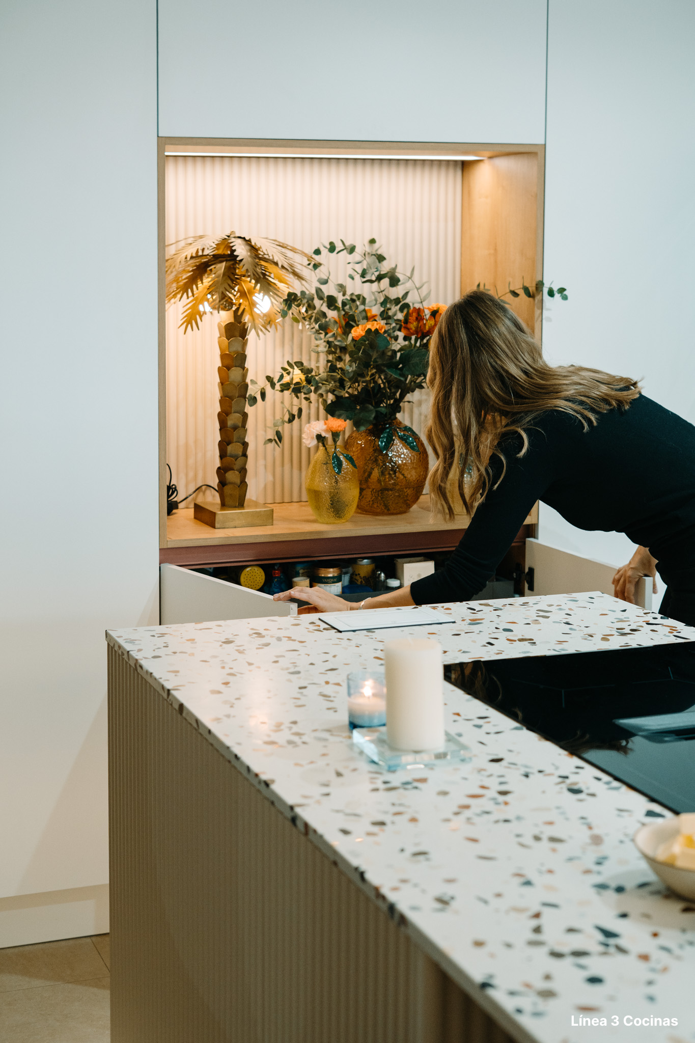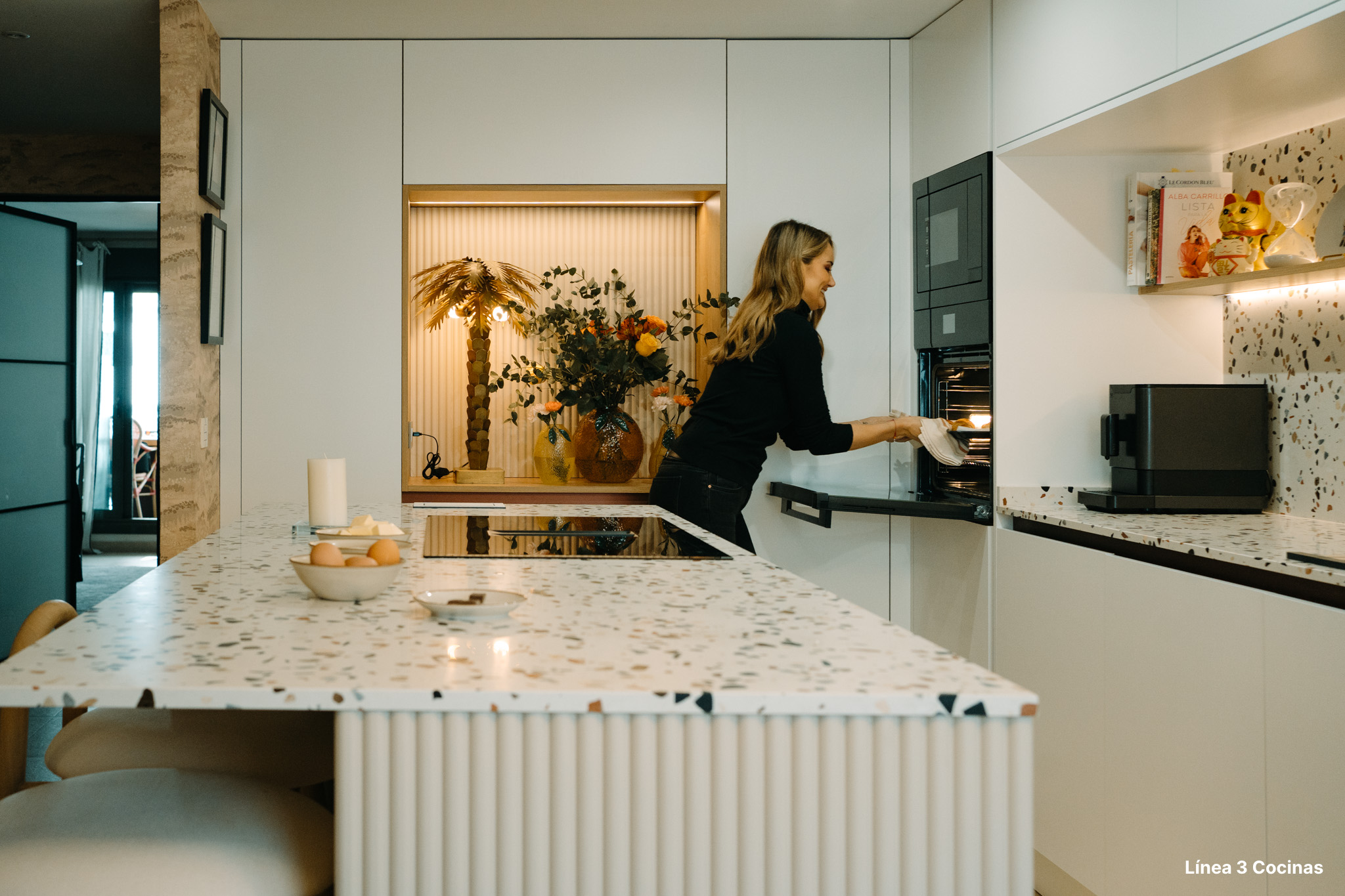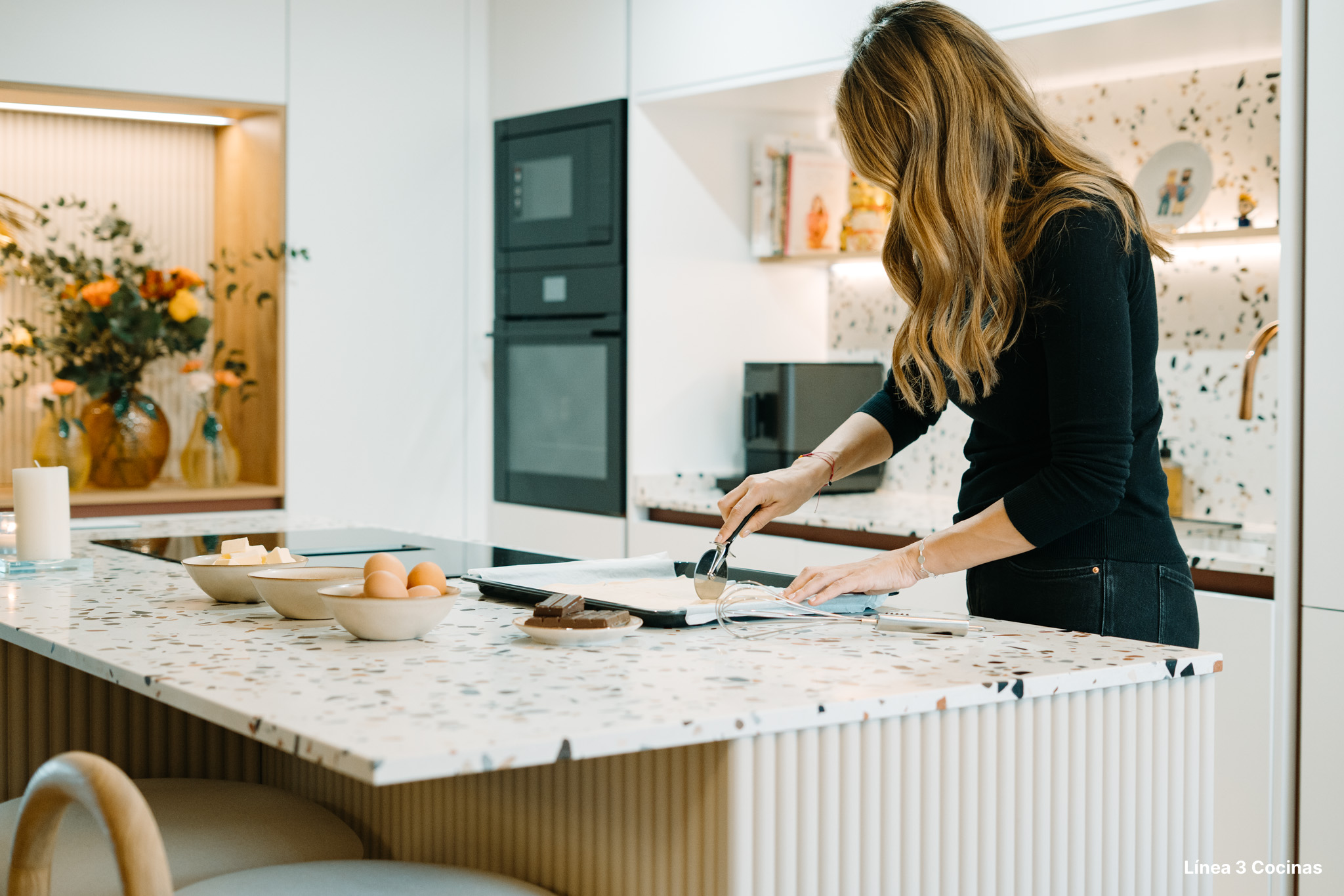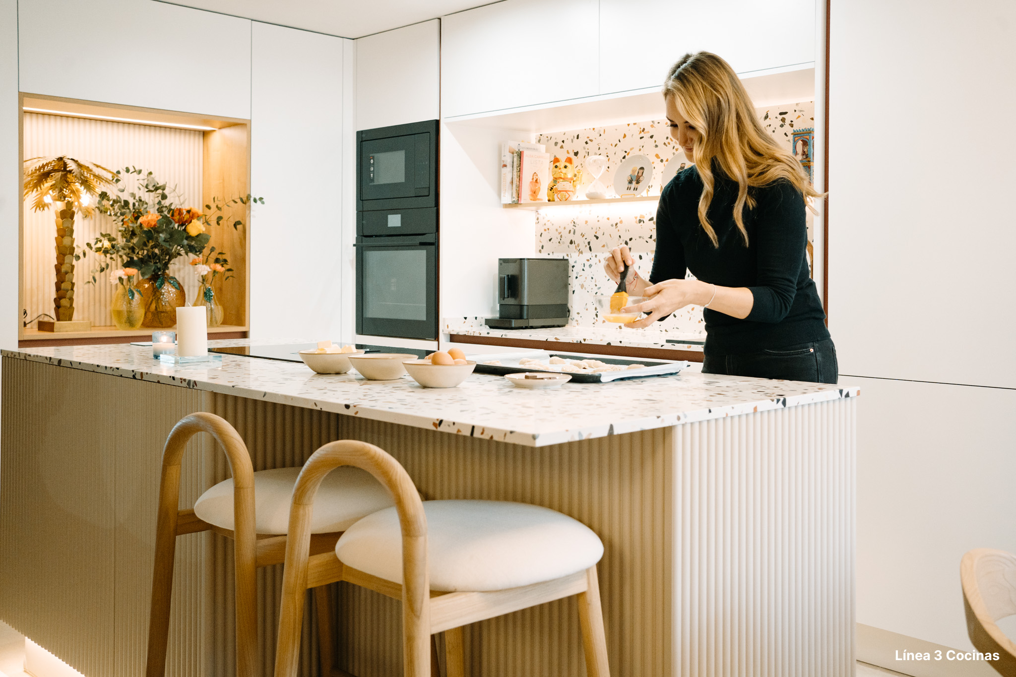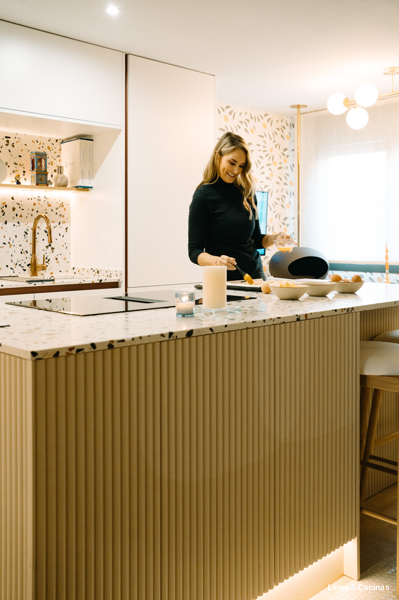 Alba Carrillo ya conocía Línea 3 Cocinas. Esta es la tercera cocina que nos confía, pero la primera vez que el proyecto era su domicilio principal. Eso cambia el peso de cada decisión.