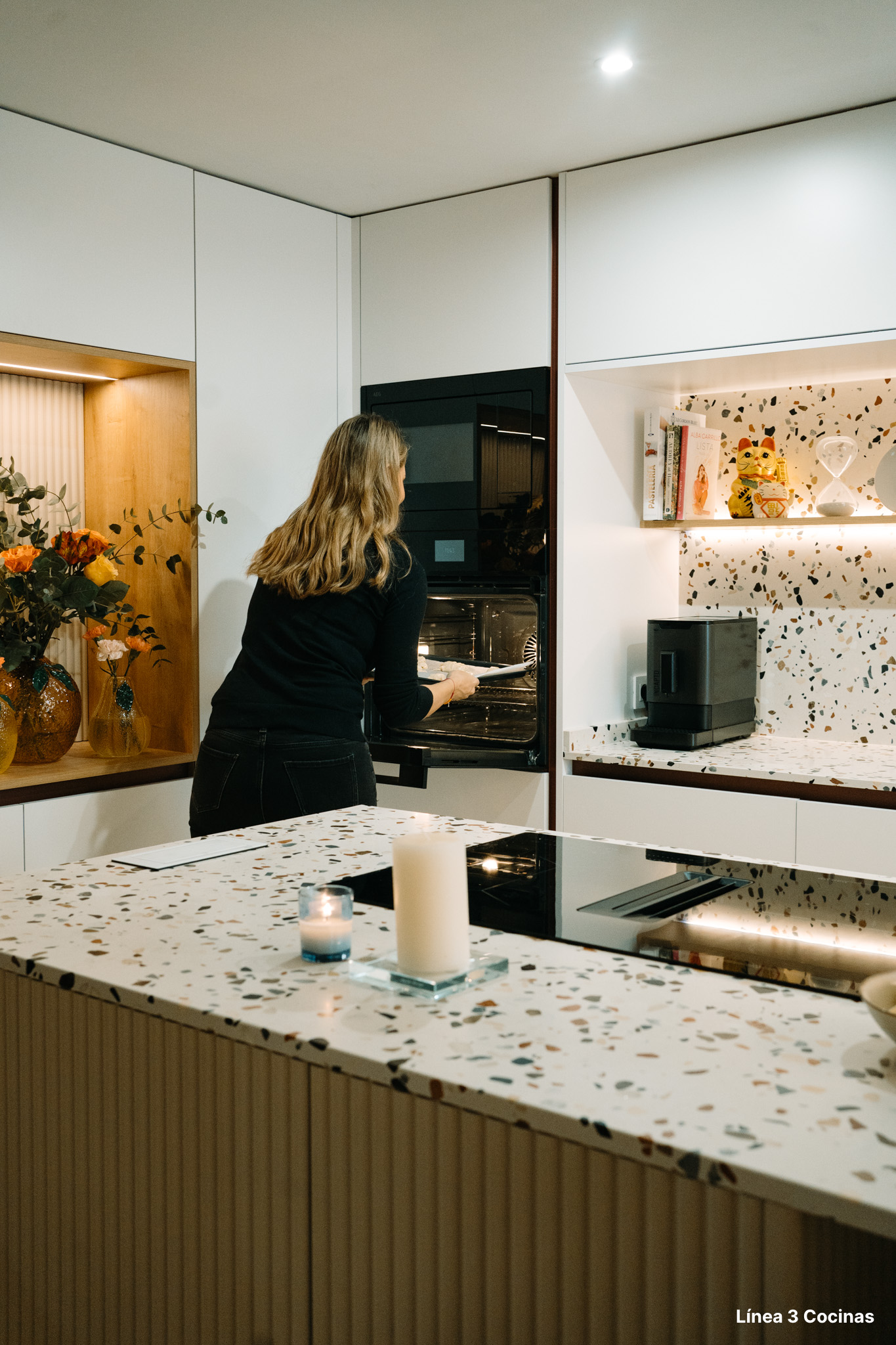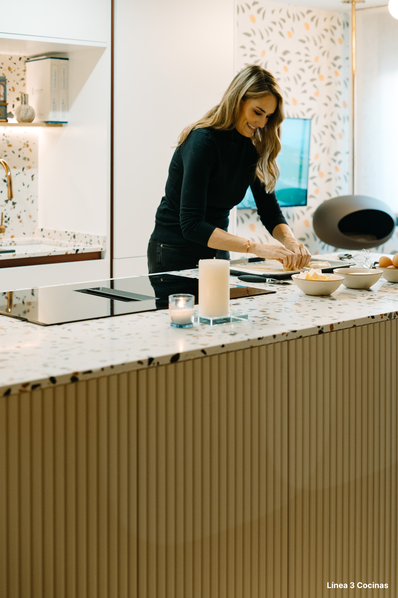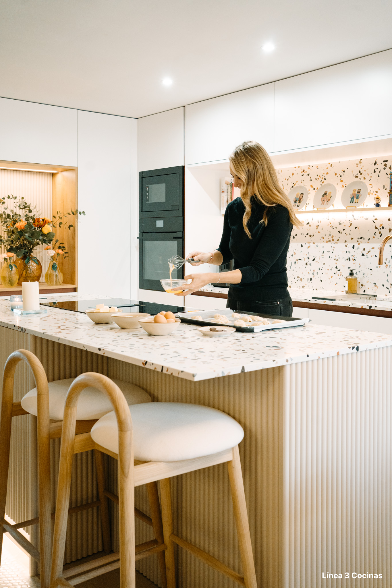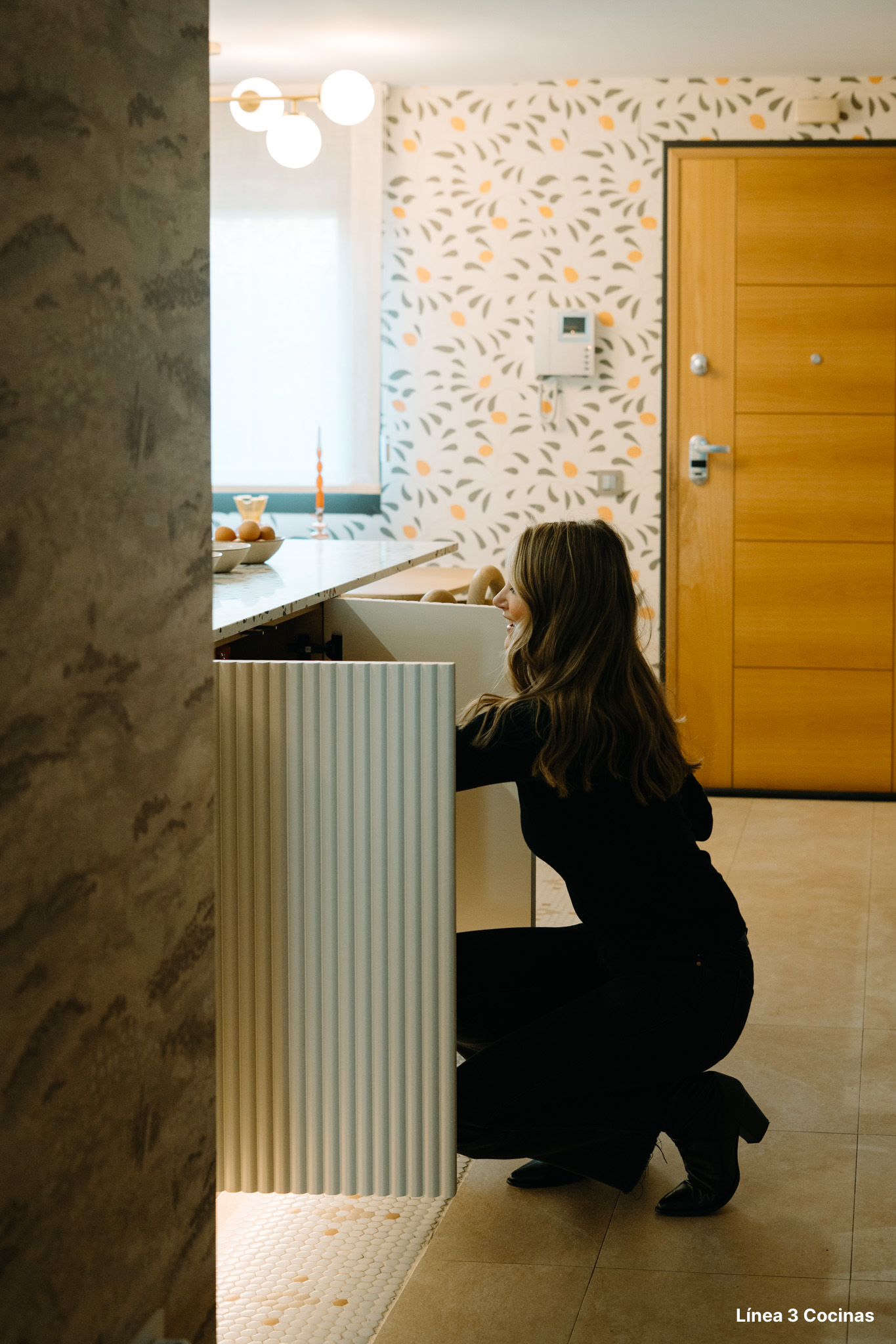 Alba Carrillo ya conocía Línea 3 Cocinas. Esta es la tercera cocina que nos confía, pero la primera vez que el proyecto era su domicilio principal. Eso cambia el peso de cada decisión.