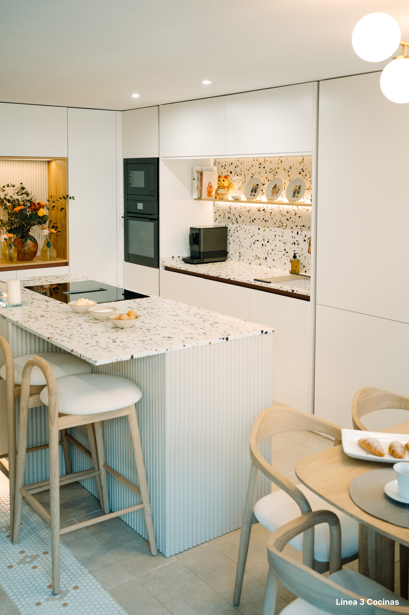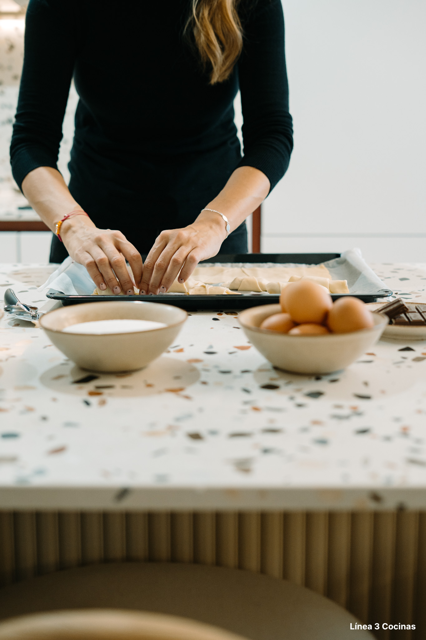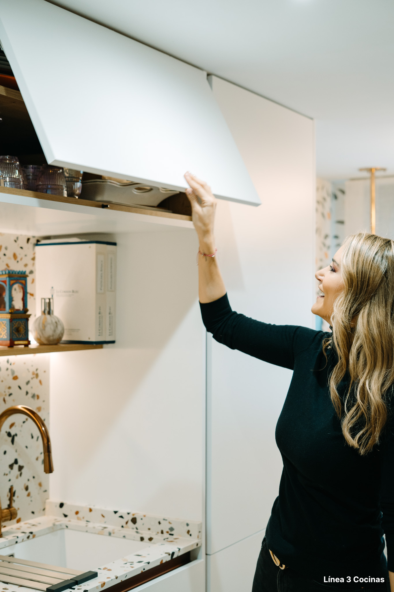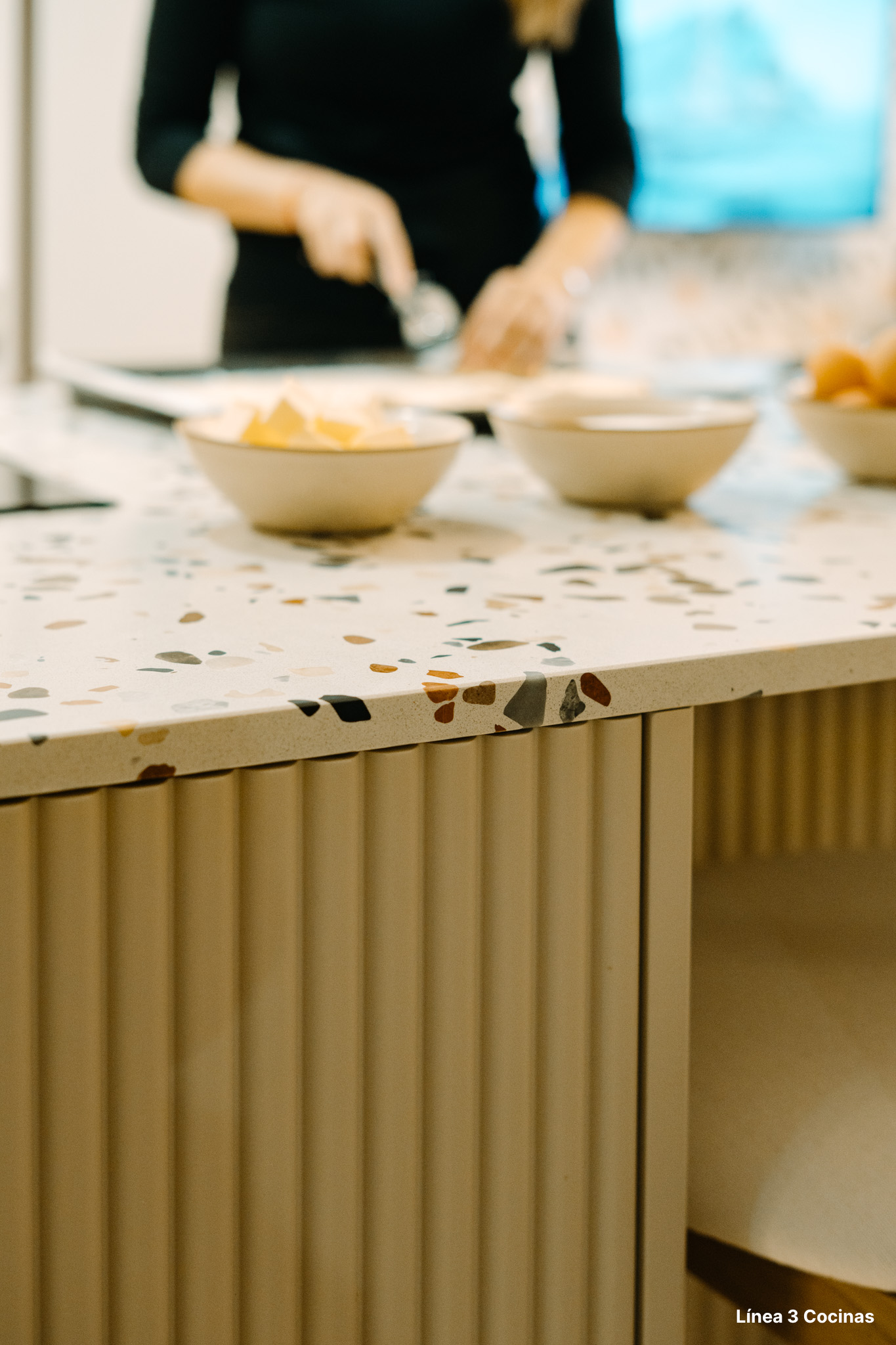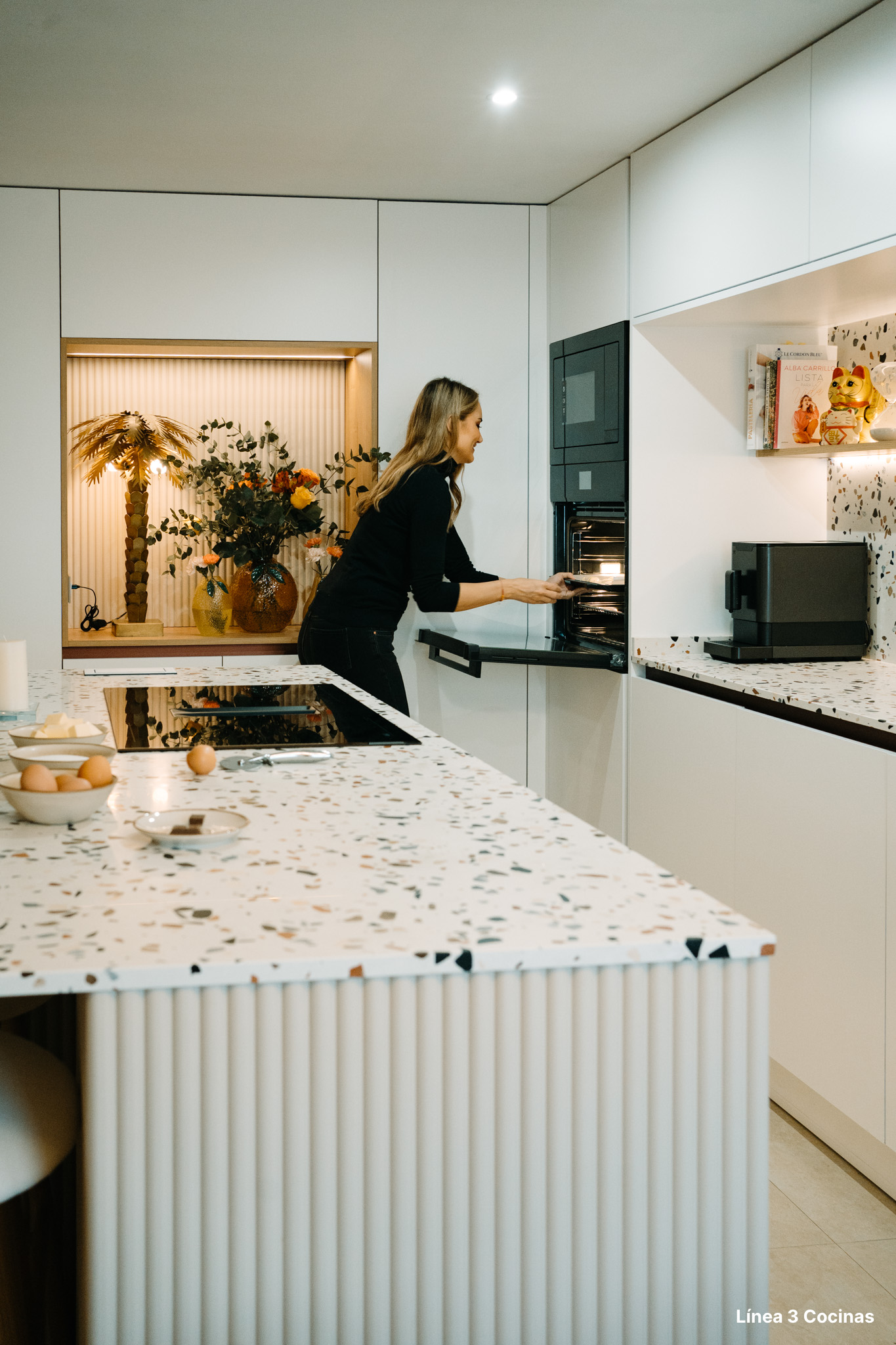 Alba Carrillo ya conocía Línea 3 Cocinas. Esta es la tercera cocina que nos confía, pero la primera vez que el proyecto era su domicilio principal. Eso cambia el peso de cada decisión.