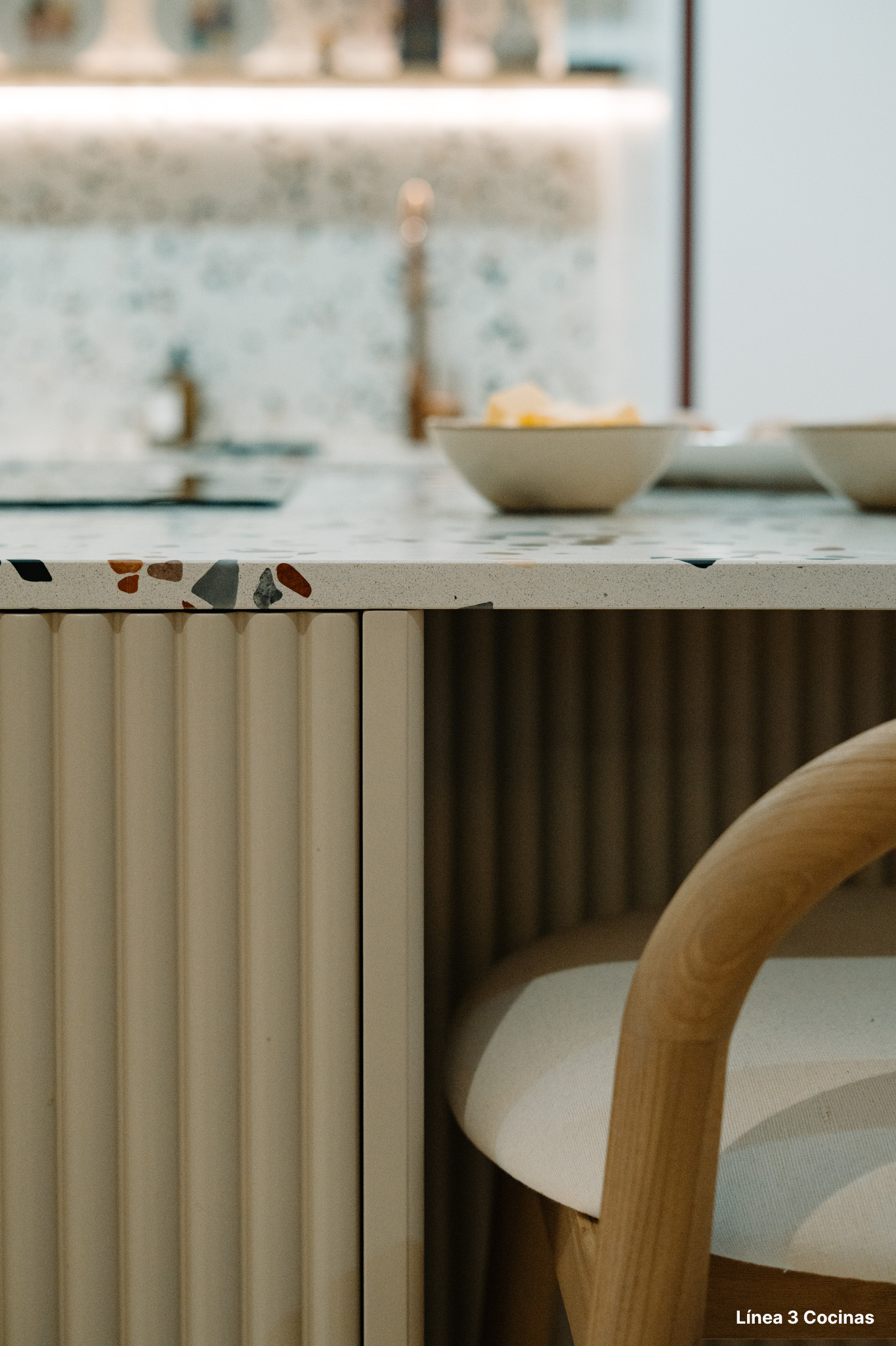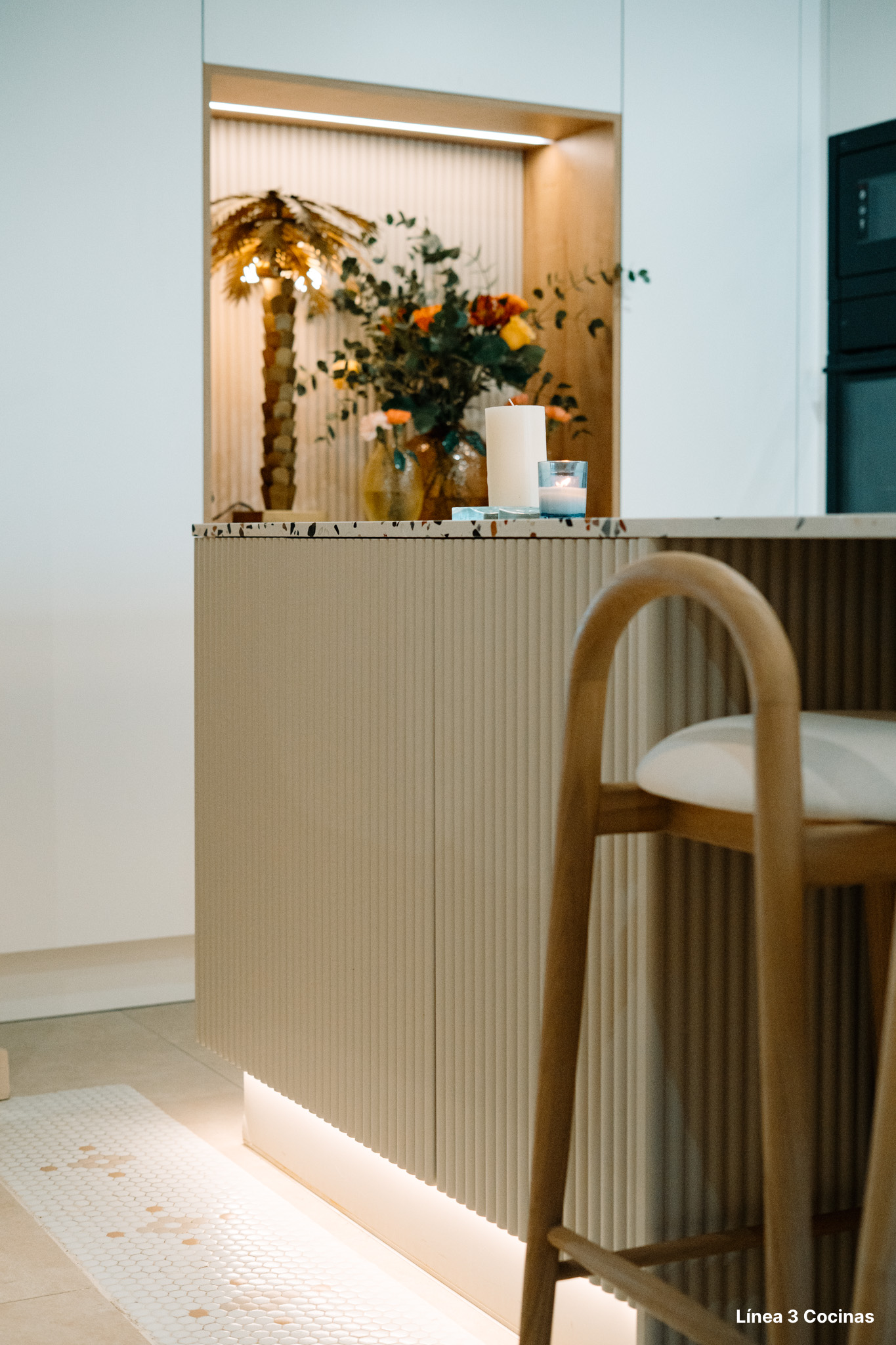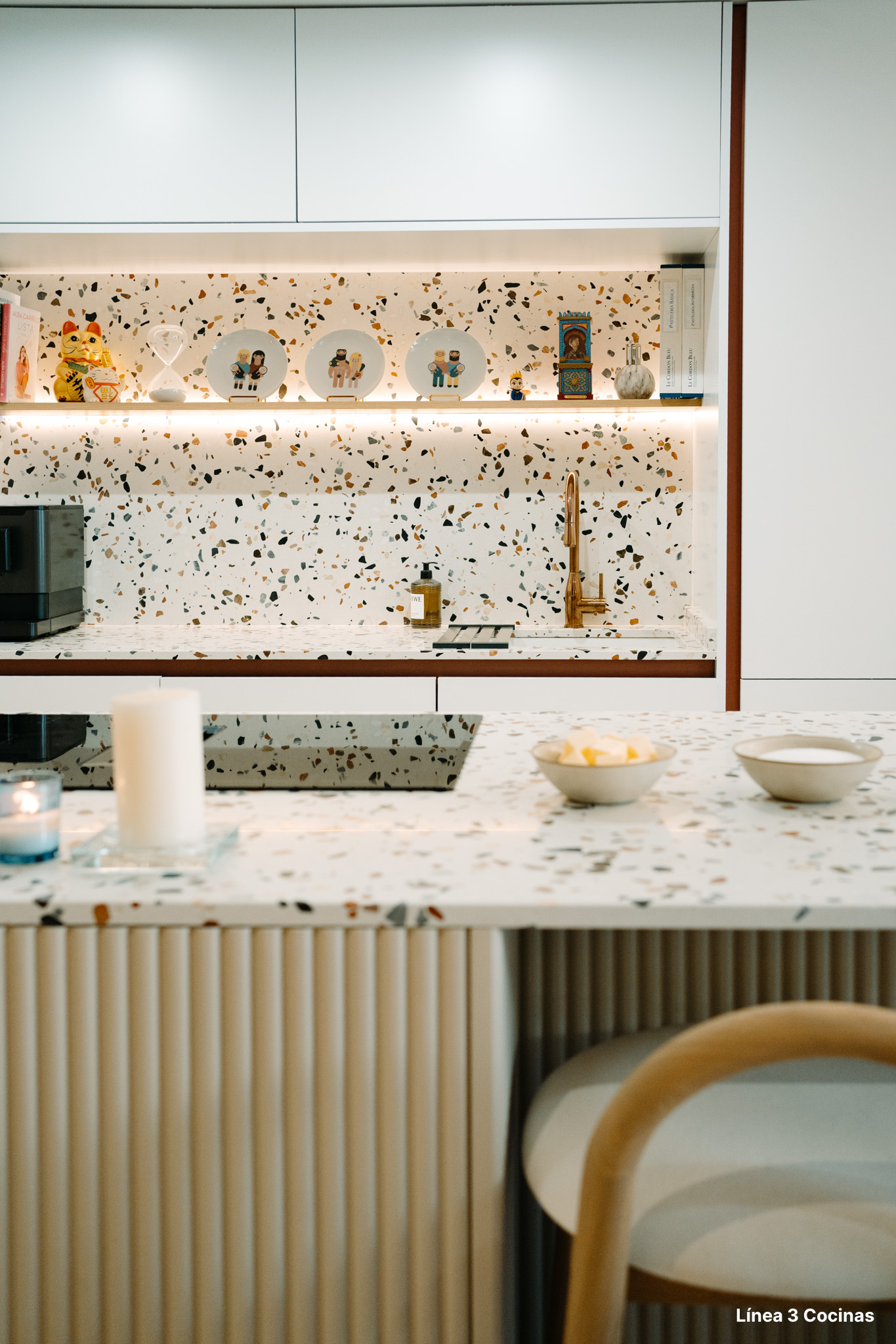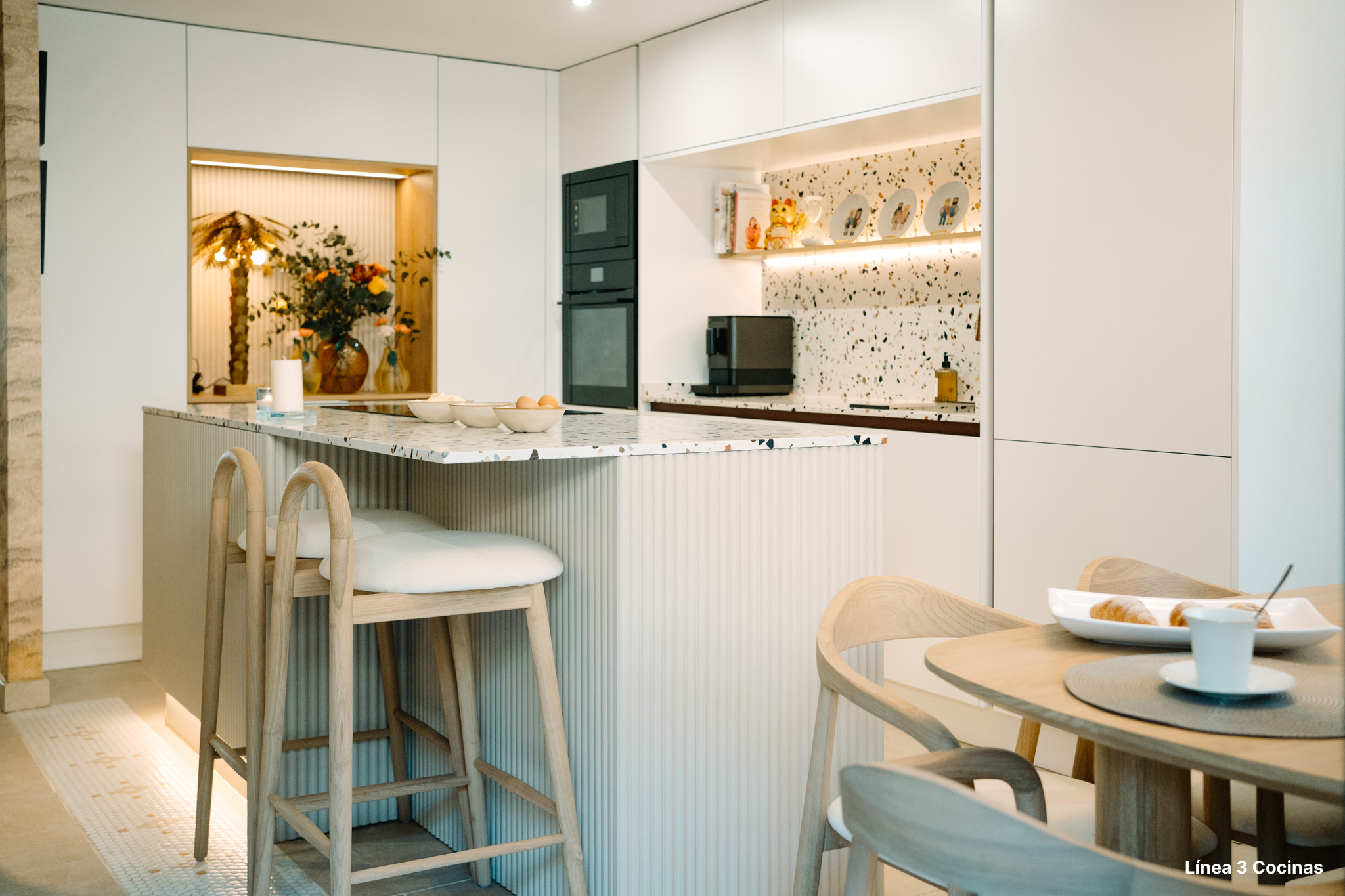 Alba Carrillo ya conocía Línea 3 Cocinas. Esta es la tercera cocina que nos confía, pero la primera vez que el proyecto era su domicilio principal. Eso cambia el peso de cada decisión.