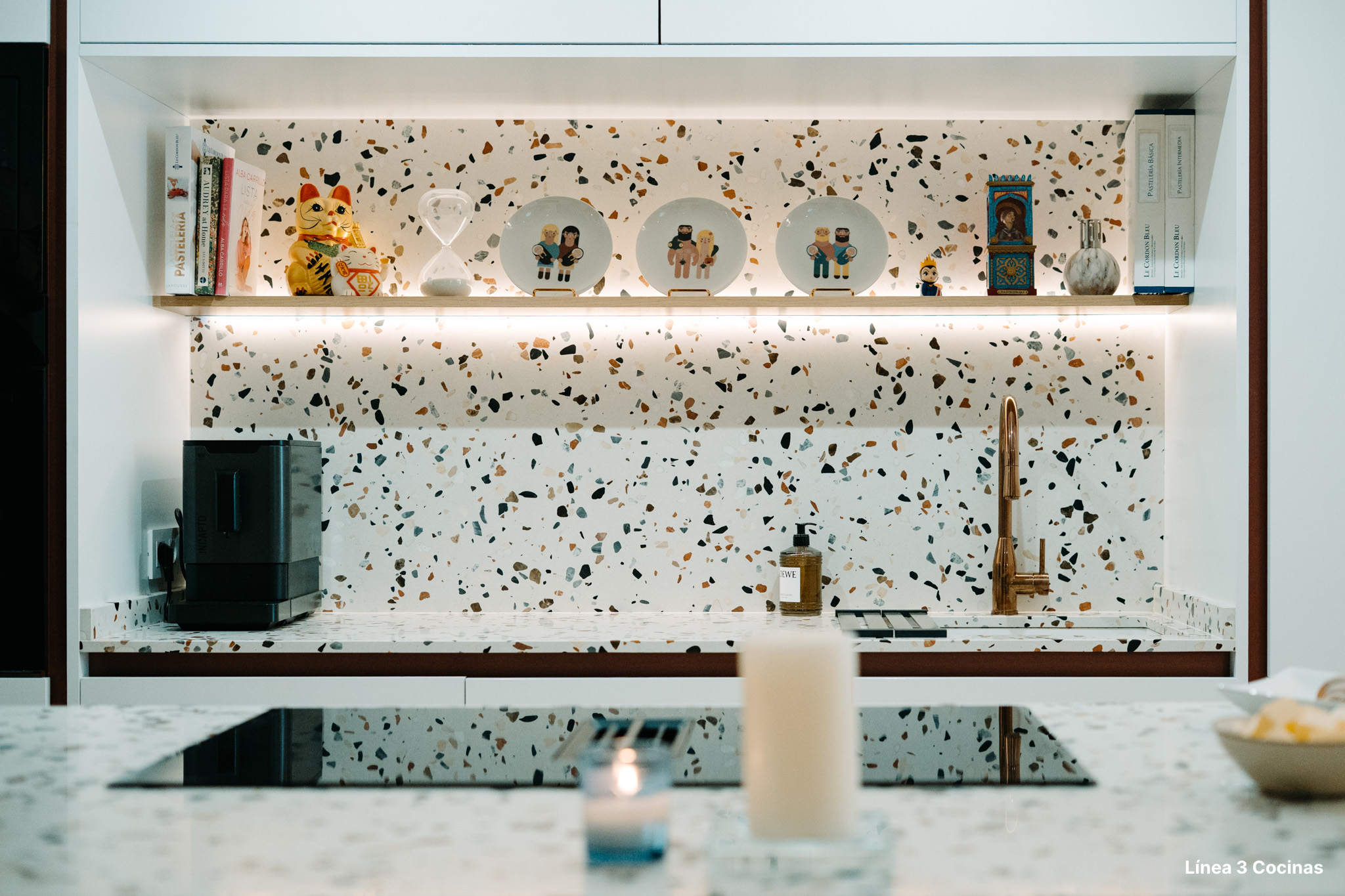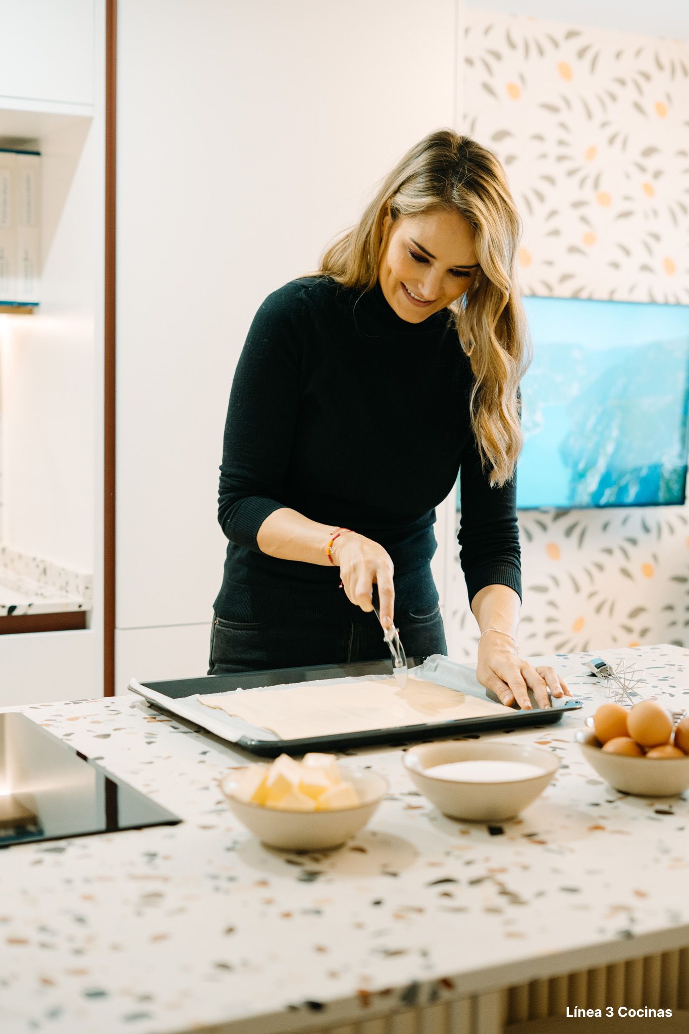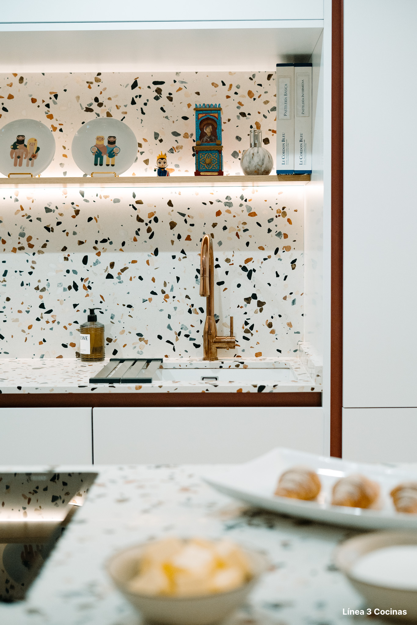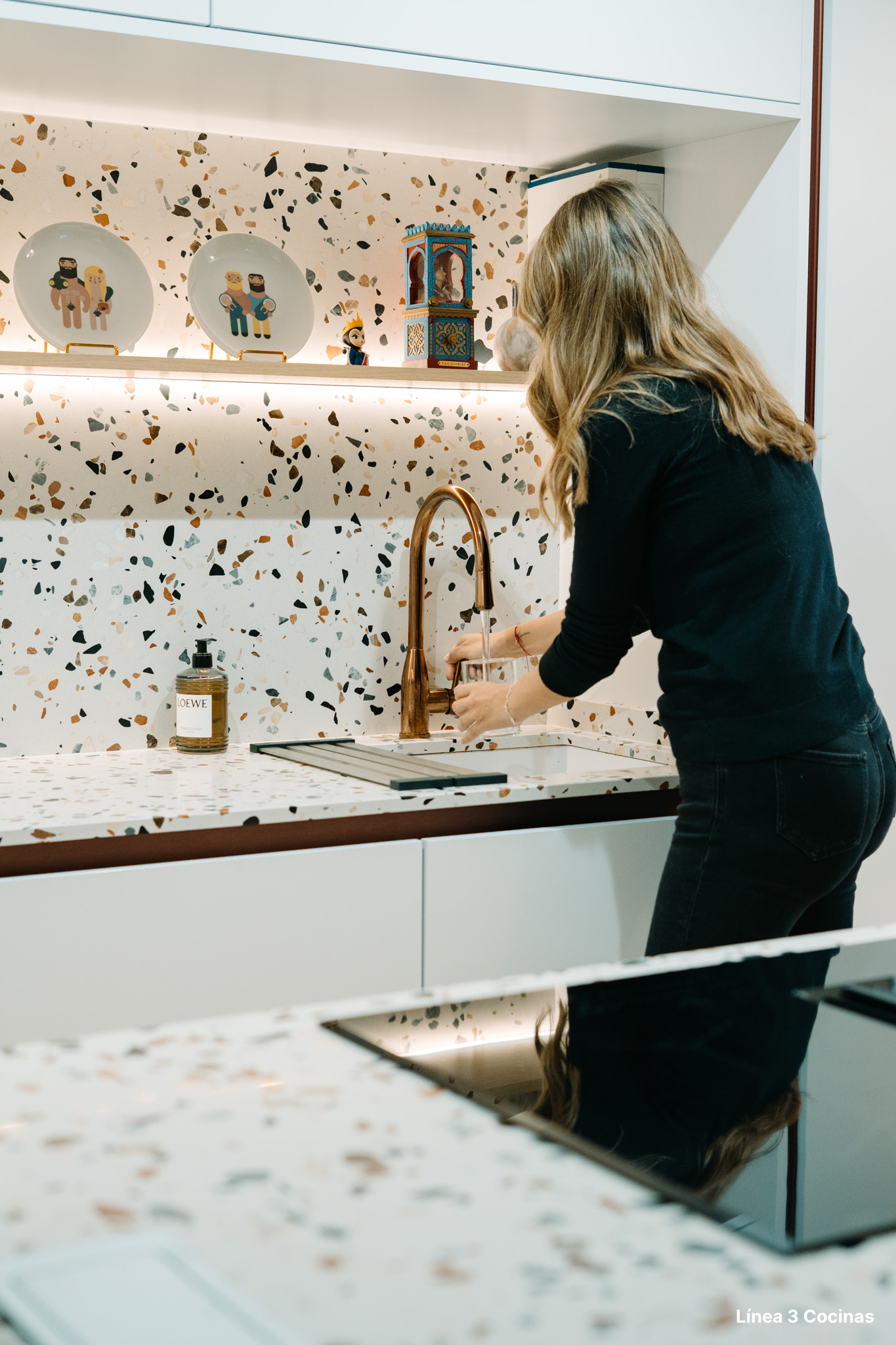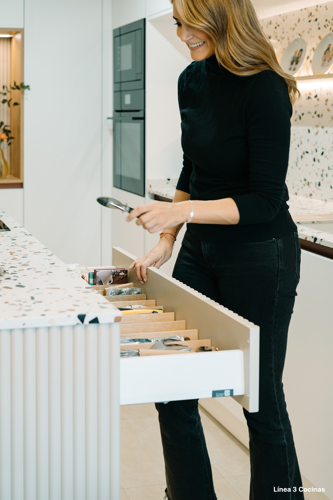 Alba Carrillo ya conocía Línea 3 Cocinas. Esta es la tercera cocina que nos confía, pero la primera vez que el proyecto era su domicilio principal. Eso cambia el peso de cada decisión.