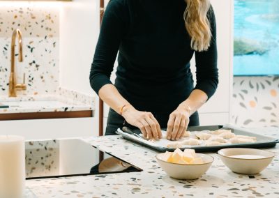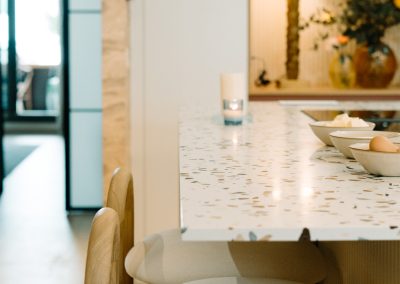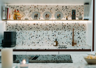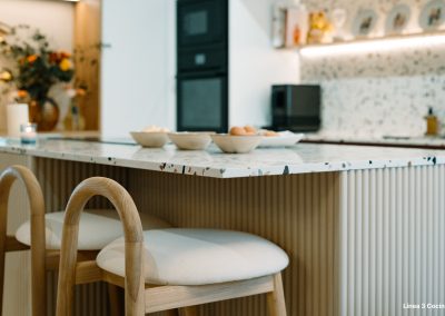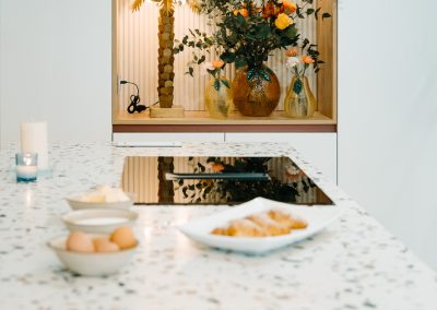 Cuando nuestra diseñadora le mostró diferentes encimeras a Alba, ella tenía claro que quería una encimera que le representara. Y entonces llegó el modelo Compac Petra Estremoz y fue un amor a primera vista. Una encimera con personalidad, llena de detalles, que sin duda da ese toque de alegría y personalidad a la cocina.