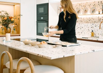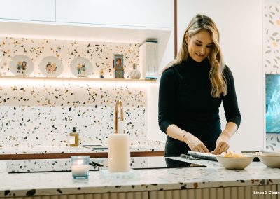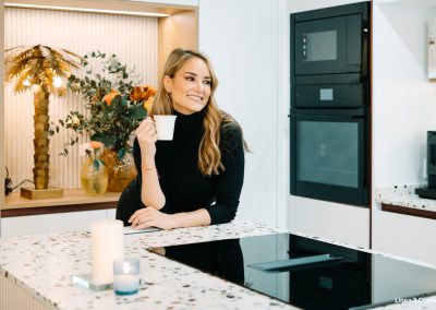 Para Alba, personalizar no es un capricho. Es la razón por la que vuelve. Que la isla tenga la altura justa para cocinar sin forzar la postura, que la encimera en Compac Petra Estremoz sea exactamente el modelo que le encanta, que cada elección parta de cómo ella vive su cocina. De esa conversación nació Néctar Carmesí, una cocina que firma nuestra Project Manager Ana Nieves.