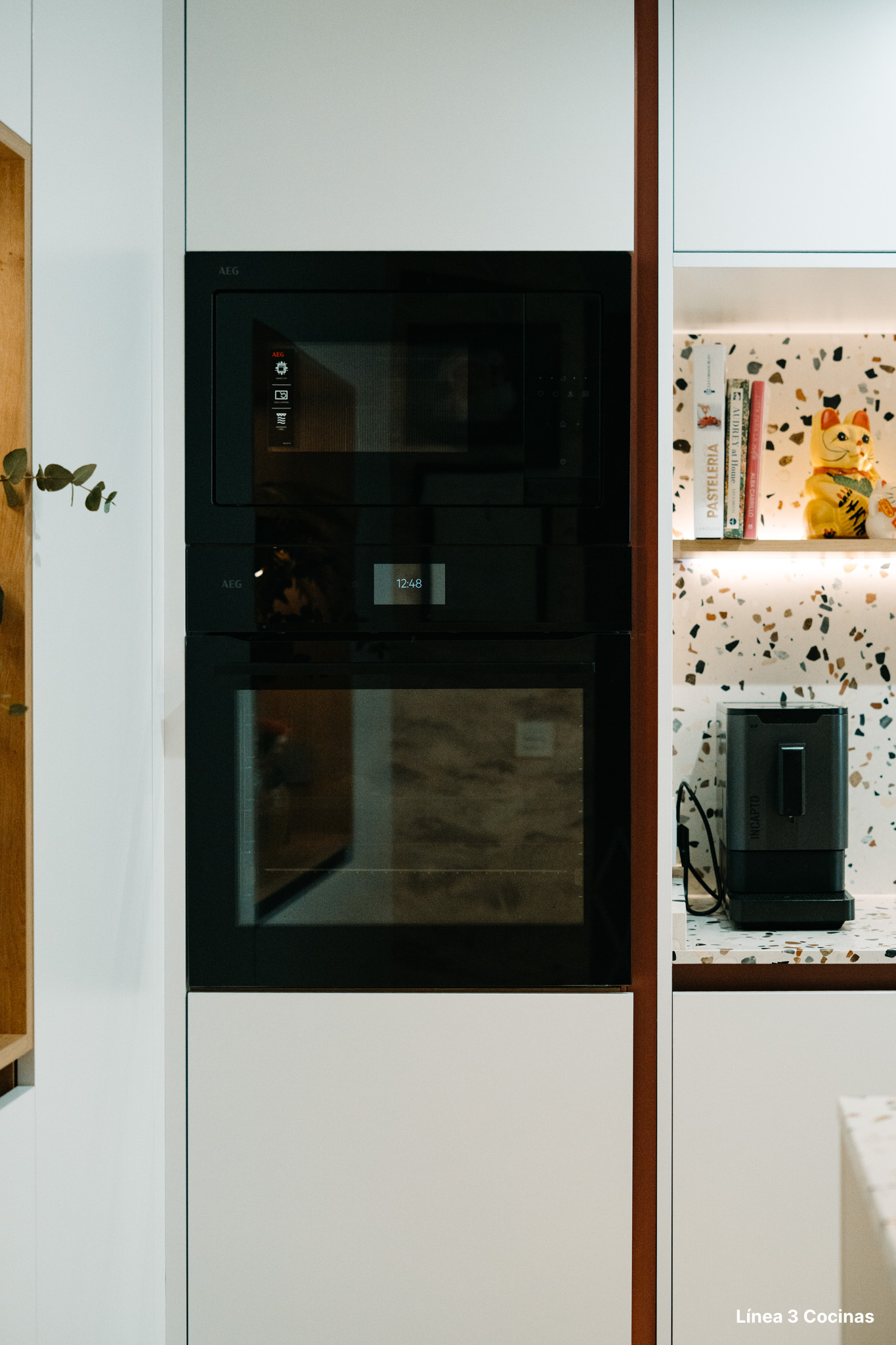 Todos los electrodomésticos son AEG. La selección no responde a una marca por defecto, sino a una lógica de integración: que cada aparato encaje en el conjunto sin que se note el esfuerzo.